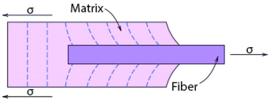 The main goal in the design of fibre-reinforced composites is increased strength and/or rigidity without increased weight. Fibre-reinforced composites with exceptionally high strengths often contain low-density fibres. The most important factor that increases their strength is the appropriate fibre length (not too short). The mechanical and strength properties of these composites depend not only on fibre properties, but also on the extent to which load is transferred to the fibres by the matrix. The manner of that transfer is shown in Figure 2.