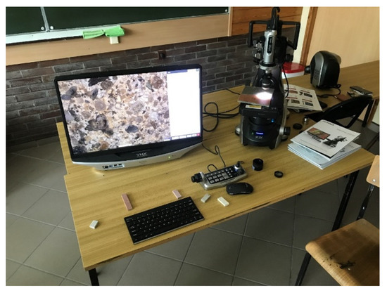 In addition, in order to verify the degraded element samples taken after testing, a structure analysis was performed on a Keyence VHX-7000 series microscope. The digital microscope used to verify the structure of the fibre cement boards and the test stand are shown in Figure 6.