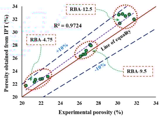 Comparison of experimental porosity with the porosity obtained from IPT.