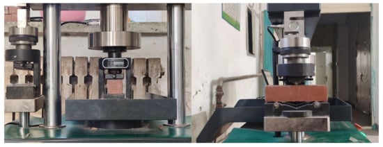 According to the national specification GB/T 17671-1999 [], a comprehensive mechanical testing machine was used to conduct the compressive and flexural strength tests. When conducting the flexural strength test, the specimen size was 40 mm × 40 mm × 160 mm, the three-point loading method was used, and the loading rate of the testing machine was 50 N/s. When the specimen was broken, the test data were recorded. In the compressive strength test, 40 mm × 40 mm × 40 mm cubic specimens were used for testing and the loading rate was 2.4 kN/s. When the specimens were damaged by compression, the peak data was recorded as the compressive strength of this test. In a set of mechanical property tests, the mechanical strength of three specimens was tested to find the average value to reduce the test error and ensure the accuracy of the results.
