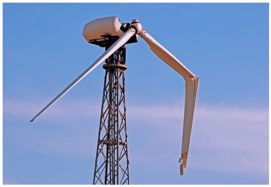 However, the maintenance of wind turbines remains an important cost factor, influencing the energy price and competitiveness of renewable energy [4]. For instance, onshore wind farm operators spent around USD 15 billion on operations and maintenance services in 2019, 57% of which was on unplanned repairs [5]. Further, the number of wind turbines reaching 20 years of operation annually, for instance, in Spain and Germany will be of the order of 800 per year in the next decade [6]. An ageing fleet leads to increased repair requirements [7,8]. With an estimated 700,000 blades in operation globally, there are, on average, 3800 incidents of blade failure each year. The total repair budgets in Europe increased from 2019 to 2020 from USD 4.7 to 8.6 mil, and unplanned repairs also increased slightly in Europe (2%) and even by 10% in America [6]. Failure events of different degrees take place relatively often. Figure 1 shows a wind turbine with broken blades.