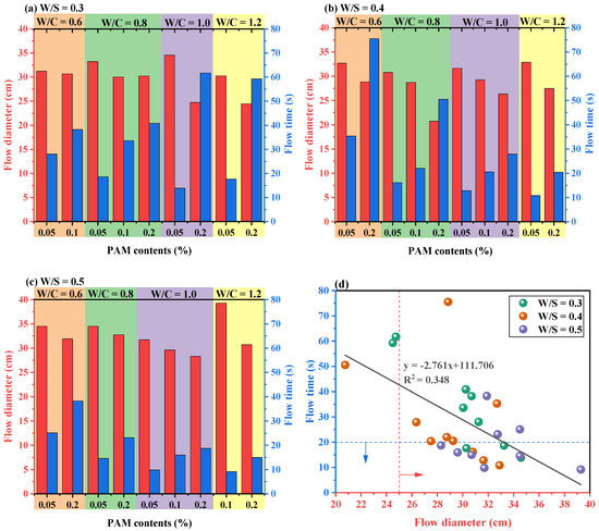 - The workability of fresh CPB mixtures mainly depends on the PAM dosage and W/S of mixtures. The yield stress and viscosity of fresh CPB mixtures increased with the PAM dosages. Moreover, reducing the W/S can effectively improve the stability of CPB mixtures;