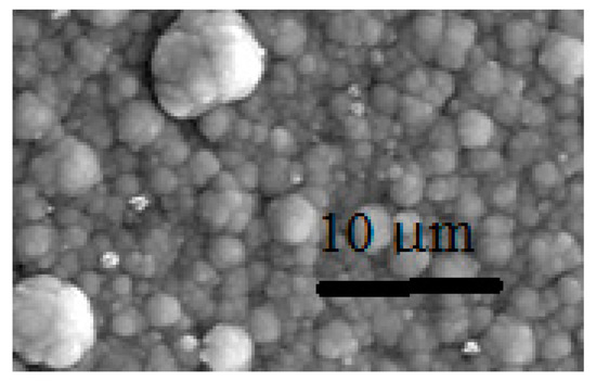 Typical SEM micrographs of the DC and PP deposits (see Table 2) are depicted in Figure 3 and Figure 4, respectively. By comparing the micrographs, it can be seen that there is a large difference between the morphology of the DC and PP deposits. While deposits obtained using DC deposition show a homogeneous, uniform, structureless surface with microcracks, the morphological structure of the pulse plated coatings are characterized by spherical structures of varying size. The morphological differences may indicate differences in the short-range ordering of DC and PP deposits.