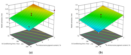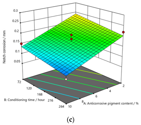 Notch corrosion = 0.103485 + 0.002544 ∙ Anticorrosive pigment content + 0.001297 ∙ Conditioning time + 0.000017 ∙ Anticorrosive pigment content ∙ Conditioning time − 0.001510 ∙ Anticorrosive pigment content2 − 4.0690 ∙ 10–6 ∙ Conditioning time2