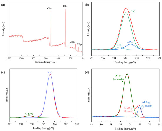 According to the test results of XPS and FTIR, the reason why the Al-O bond and the absorption peak of Al-OH appear is speculated as follows (Equations (5)–(7)):