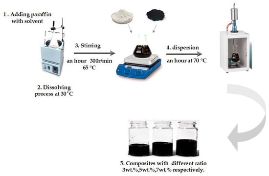 The paraffin preparation included the dispersion of nanoparticles in liquid PW, due to the carbon nanotubes being nonpolar and having no affinity towards polar materials.