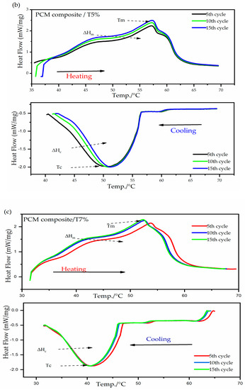 - The thermal reliability and durability of the nanocomposites were evaluated by DSC with scans for the 15th cycles of heating—cooling cycles for a concentration of 5 wt.%. This was found to be consistent with the PW cycles.