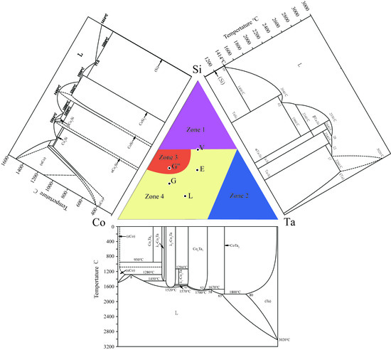 - The four known ternary phases, G (Co16Ta6Si7), E (CoTaSi), G″ (Co4TaSi3) and V (Co4Ta4Si7) have almost no ternary solid solubilities, which could be treated as stoichiometric compounds.