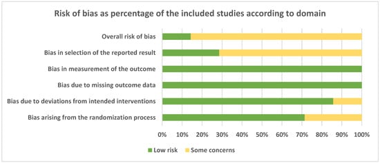 - Sterne, J.A.C.; Savović, J.; Page, M.J.; Elbers, R.G.; Blencowe, N.S.; Boutron, I.; Cates, C.J.; Cheng, H.Y.; Corbett, M.S.; Eldridge, S.M.; et al. RoB 2: A revised tool for assessing risk of bias in randomised trials. BMJ 2019, 366, I4898. [Google Scholar] [CrossRef] [PubMed]