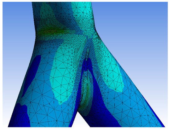 Numerical analyses of fully overlapped Y-joints are found in [3] for multiplanar joints and [4,5,6,7] for uniplanar joints. The branches are connected to the top of the chord. An intermediate plate is necessary because of the unequal diameters of the different pipes. This intermediate plate generates a different stress distribution than a directly connected system. The intermediate plate weakens the node [7]. If there is a steeper inclination angle, the contact area will become more concentrated. This results in higher stresses and deformations. Ibrahim et al. [8] conducted experimental studies regarding circular hollow sections under bending. Different geometrical parameters, such as the diameter-to-thickness ratio, were analyzed. It was concluded that wave buckling arises depended on the thickness of the profile. Jankovic et al. [9] conducted case studies about standard defined Y-joints with circular hollow sections. The inclined brace was connected to the side flank of a circular hollow section chord via a welding line. The effect of the brace was calculated, and the resultant stress was affected by the chord without modelling the complete joint. This was done for the compression force-load scenario. Mia et al. [10] conducted numerical studies about XT-joints combined with a fixed 90° inclination angle. This is a multiplanar joint with different load scenarios and profile thicknesses. The mesh is comparable to the numerical analysis presented in Section 4. It was concluded that the maximum stresses decreased with a higher profile thickness. Oshogbunu et al. [11] conducted numerical studies about multiplanar DKK-joints for offshore structures. The inclination angle was set to 45°, and the braces did not overlap. Different thickness ratios were investigated. For the numerical simulation, beam-solid 20-node elements were used. The focus was given to fatigue loadings. Ozyurt et al. [12] conducted case studies about different standard-defined circular-hollow section joints. T-, K-, X-, Y-, and N-joints were analyzed under the influence of tension and compression by elevated temperatures. There was a gap between the braces. The profile diameters and thickness varied. A refined mesh was set to the area of the welding line. For the compression case it was concluded that the strength calculation equations at ambient temperature delivered the most precise results. Zhao et al. [13,14] conducted experimental studies about overlapped K-joints. Different welding situations were considered. One brace was in tension, the other one was in compression. It was concluded that a hidden weld is recommended for overlapped joints. The throat thickness of the fillet weld and the weld quality in tubular joints should be strictly guaranteed in order to prevent cracking. Shen et al. [15] conducted experimental studies about T-,Y-, and K-joints with oval hollow section profiles. It was pointed out the importance of hollow section joints in the industry. It was concluded that the failure modes were mainly affected by the ratio of the brace diameter to the chord width and the intersection orientation. Punching into the chord increased failure.