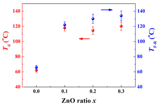 Td and TF-R as a function of ZnO ratio x.