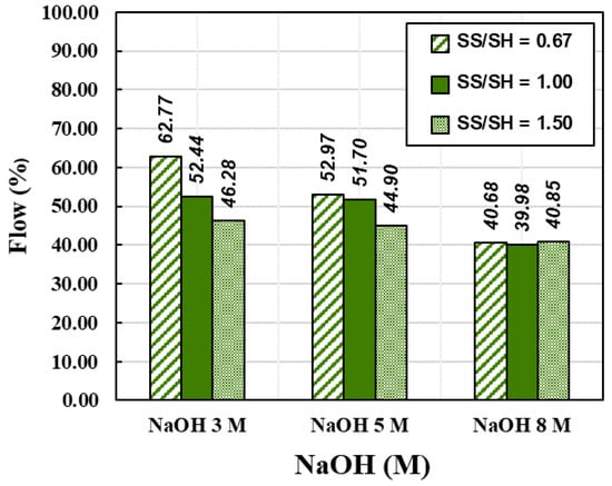 Flow values of various NaOH concentrations and SS/SH ratios.