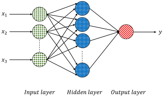 ANNs have proven to be standard functional approximations that can fit complex functions or solve classification problems. The most typical ANN structure consists of three layers—a labeled input layer, a hidden layer, and an output layer—as shown in Figure 2.