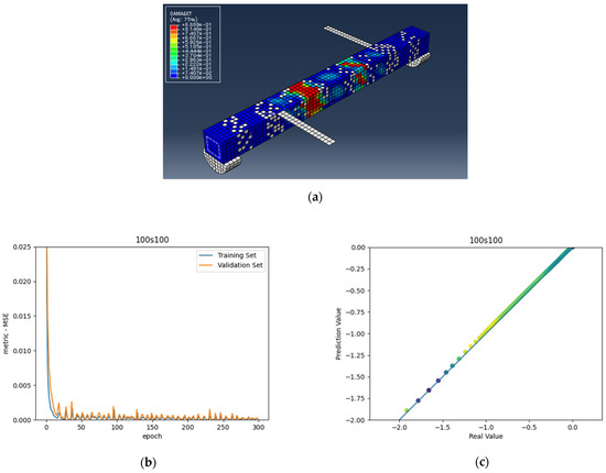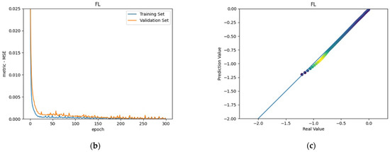 As shown in the above pictures, after a limited number of ANN iterations, MSE can obtain a sufficiently small value on the training set and validation set. Meanwhile, the predicted value can perfectly fit the actual value, as seen from the scatter diagram. In the subfigures (c) of Figure 5, Figure 6, Figure 7, Figure 8, Figure 9, Figure 10, and Figure 11, the line indicates where the predicted value is equal to the actual value. The closer the scatter distance is to the line, the more accurate the predicted value is.