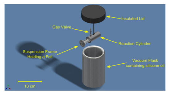 The heat of thermite reactions can be determined by computational methods using thermochemical codes (such as TIGER, CHEETAH, EXPLO5 or CEA [115,124,125] or more complex computational models [126,127]. The indicated thermochemical codes are typically based on the prominent equations of state for explosives, such as the Becker–Kistiakowski–Wilson (BKW) equation in the case of TIGER and CHEETAH codes [128], or the Jones–Wilkins–Lee (JWL) as in the case of the EXPLO5 code [129] equations. Thermochemical codes can vary significantly in terms of assumptions about the reacting system or the relevant boundary conditions, i.e., EXPLO5 is limited to modelling combustion in either adaiabatic or isochoric conditions. It should also be noted that these methods allow only to a limited extent to take into account the heat loss and the non-ideal, real reaction regime. This parameter can also be determined on the basis of DSC or DTA studies, however, with all the limitations of this technique mentioned above. Depending on the chosen method, the measured or calculated values may be extremely different [130]. A typical method for determining the heat of reaction, is to use calorimetric bombs. Calorimetric bomb makes it possible to determine the total heat of reaction, making it possible in the case of detonation calorimeters, to study even several tens of kilogram samples of high-energy materials [131]. An important advantage is also the conduct of measurements in different atmospheres and pressures.