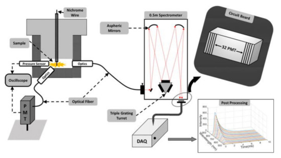 In [192] the authors presented a methodology for measuring reaction temperatures based on multi-wavelength pyrometry (Figure 10).