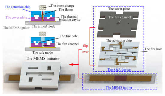 - Hu, T.; Zhao, Y.; Wang, K.; Fang, K.; Ren, W. The development of an on-chip microinitiator with a built-in safety-and-arming device. Rev. Sci. Instrum. 2021, 92, 025007. [Google Scholar] [CrossRef]