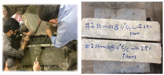 Casting of column specimen with and without fibers reinforcement.