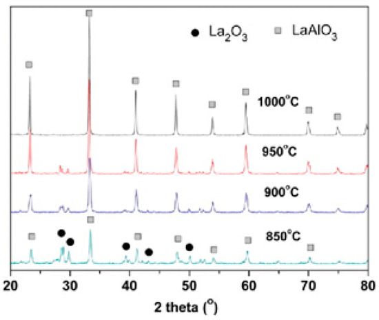 | LaAlO3 | Solid-state reaction | * | 1000 | [44] |
