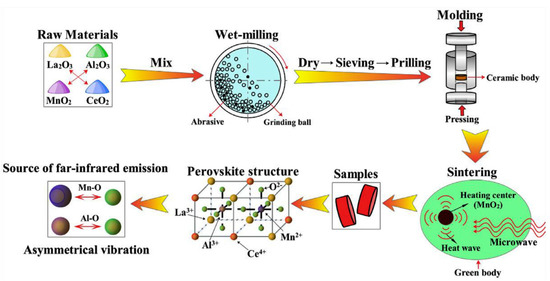 - Deng, Y.; Zhang, K.; Yang, Y.; Shi, X.; Yang, L.; Yang, W.; Wang, Y.; Chen, Z.G. Ce/Mn dual-doped LaAlO3 ceramics with enhanced far-infrared emission capability synthesized via a facile microwave sintering method. J. Alloys Compd. 2019, 774, 434–442. [Google Scholar] [CrossRef]