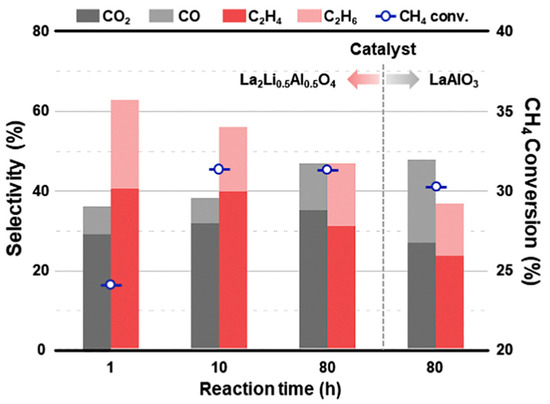 - Kwon, D.; Yang, I.; Sim, Y.; Ha, J.M.; Jung, J.C. A K2NiF4-type La2Li0.5Al0.5O4 catalyst for the oxidative coupling of methane (OCM). Catal. Commun. 2019, 128, 105702. [Google Scholar] [CrossRef]