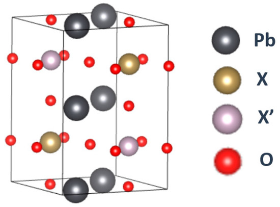 In this research, we present electronic structure calculations with generalized gradient approximation (GGA) plus on-site coulomb interaction (GGA + U). Structural optimization calculations are carried out through the full-potential projector-augmented wave [61] (PAW) method by using the code of the Vienna Ab Initio Simulation Package (VASP) [62,63,64] to determine the theoretical lattice constraints and atomic positions. The calculation for the Brillouin zone is conducted using Monkhorst–Pack k-grid sampling. The cut-off energy of the plane wave basis is set to 450 eV. The energy convergence criteria for the full structure optimization and self-consistent calculations are set to and eV, respectively. The Wigner–Seitz radius of the Pb atom is set as 3.3 atomic units (a.u.), 1.6 a.u. for O atom and 2.7 a.u. for X(X′) ion. For the final and equilibrium structures, the forces and stresses acting on all the atoms are less than 0.3 eV/Å and 0.9 kBar, respectively.