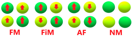 The schematic diagram of four magnetic states: FM, FiM, AF and NM.