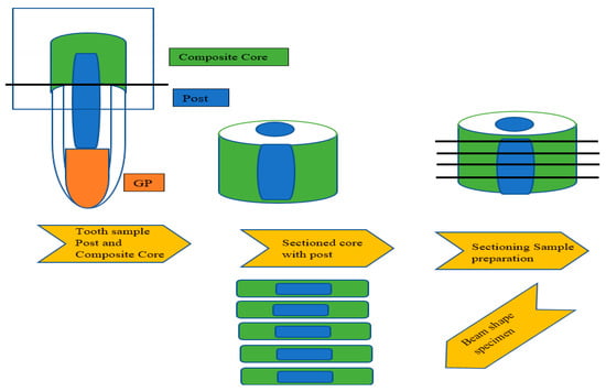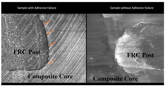- Khamverdi, Z.; Kasraei, S.; Azarsina, M.; Gheysari, F. Microtensile bond strength of quartz fiber posts to different composite cores. Braz. Oral Res. 2011, 25, 295–301. [Google Scholar] [CrossRef] [PubMed]