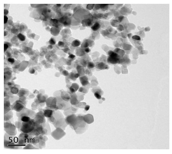 The transmission electron microscope (TEM) analysis of the TiO2 NP showed a spherical smooth shaped uniform distribution of the nanoparticles. The nanoparticles were in the range of 250–300 nm scale (Figure 2—TiO2 NP under TEM with a magnification of roughly 50 nanometres).