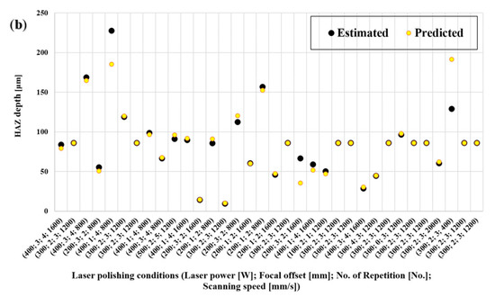 On the other hand, even with fewer input data points, a model giving a good fit was developed for the depth of the HAZ. Since the estimated heat-affected zone depths were obtained from a computational simulation without noisy data, the presence of outliers was not very likely amongst the input data sets.