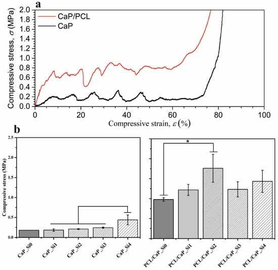 - Milovac, D.; Gallego Ferrer, G.; Ivanković, M.; Ivanković, H. PCL-coated hydroxyapatite scaffold derived from cuttlefish bone: Morphology, mechanical properties and bioactivity. Mater. Sci. Eng. C 2014, 34, 437–445. [Google Scholar] [CrossRef]