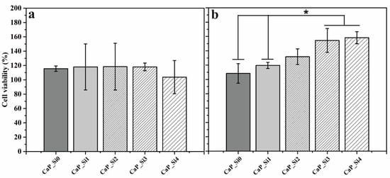3.7. Cytocompatibility Assesment of the CaP_Si Scaffolds