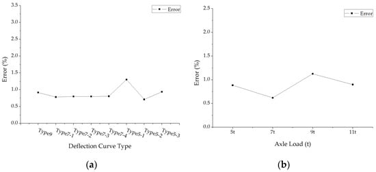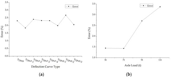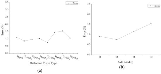 The average errors of back calculated surface modulus: (a) The average errors under different deflection curve types; (b) The average errors under different axle loads.