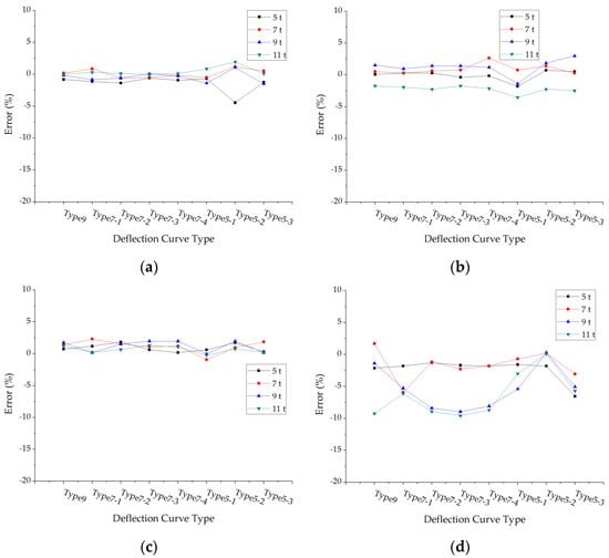 The back calculation errors of subgrade modulus are generally smaller, which means the accuracy of back calculated subgrade modulus is higher. It could be seen from Figure 12 that the errors of back calculated subgrade modulus have few effects by the deflection curve types and axle load levels.