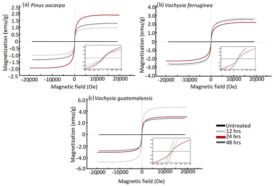 | Species | Treatment (h) | Ms (emu/g) | Hc (Oe) | Mr (emu/g) | Experimental Percentage (%) |