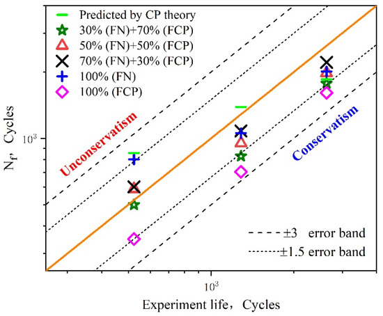 Since the cracks will evolve with the loading cycles and finally reach a critical value, one can obtain the fatigue life formula by integrating Equation (15) from an assumed small crack to a critical crack size . The expression of FCP life for the considered material is then: