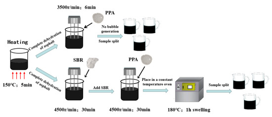 The preparation process for PPA-modified asphalt and PPA/SBR-modified asphalt.