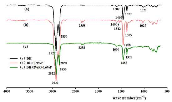 Infrared spectra of DH and its modified asphalts.