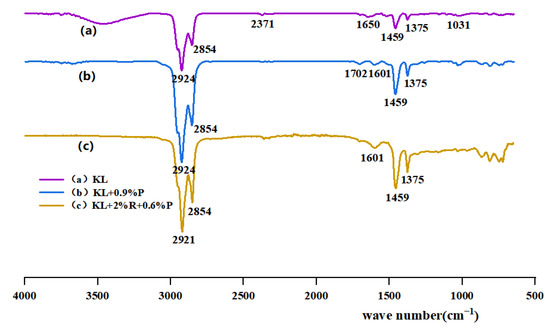 Infrared spectra of KL and its modified asphalts.