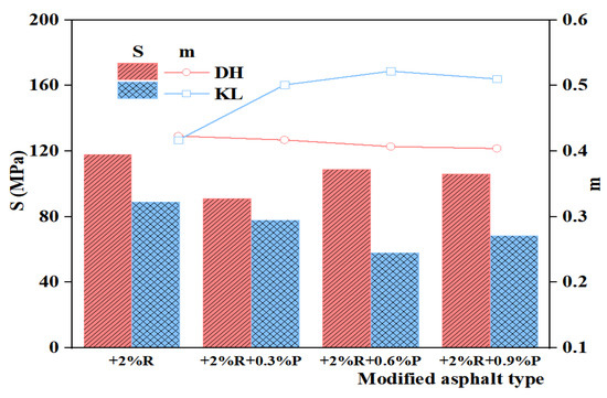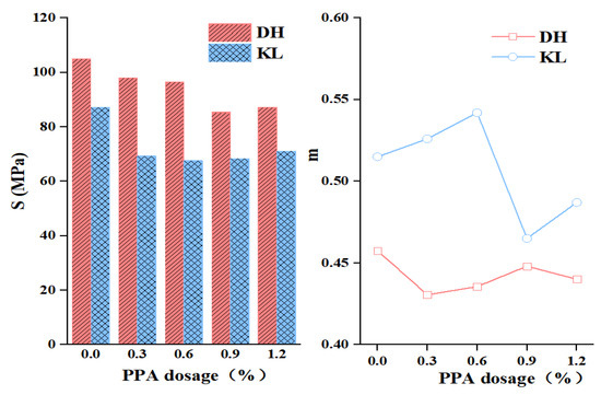S and m of composite modified asphalt with different PPA dosages.