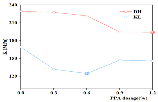 K index of single modified asphalt with different PPA dosages.