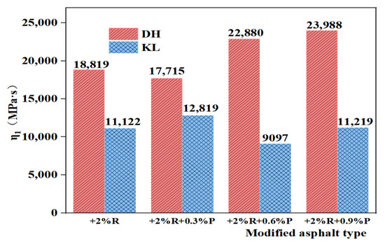 The η1 value of composite modified asphalt with different PPA/SBR dosages.