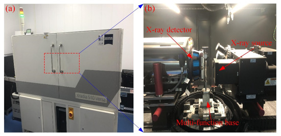 Zeiss Xradia 510 Versa high-resolution CT system (a) and interior (b).