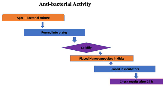 The NPs of Ag are acknowledged antibiotics that have the capacity to yield ROS, such as hydroxyl radicals, peroxide, superoxide, and singlet/alpha oxygen, following the Fenton reaction [20]. These ROS—when attacking bacterial/pathogen surfaces—cause damage to the DNA, oxidation of the protein, peroxidation of the lipid, and death to the bacterial cell. (Shown in Figure 8).