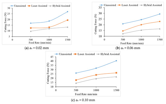 - The cutting forces are high for milling. The cutting force increases as the radial depth of cutting and feed rate increase for both milling and grinding. When compared to unassisted milling, laser-assisted and hybrid-assisted milling lowered the total cutting forces by 26% and 46%, respectively.
