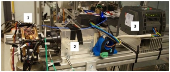 Close-up view of the bearing (1), electrospindle (2) and inverter (3).