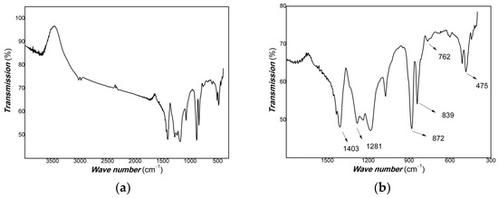As shown in Figure 4, the bands at 839, 1281, and 1403 cm−1 corresponded to the polar β phase of PVDF. The amorphous phase is characterized by two bands at 475 cm−1 and 872 cm−1. The 762 cm−1 is attributed to the presence of the α phase of PVDF.