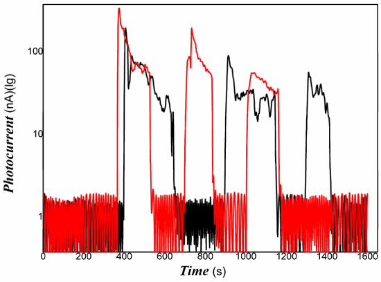 Photo-responses of nanocomposite to visible light and NIR. The Pt/PVDF solution was cast on the inter-digital electrodes of Au on a flexible PET (polyethylene terephthalate) substrate. After drying, the photo-conductive responses of Pt/PVDF solid film (without any electrolyte) to weak visible light (20–25 W) and 808 nm NIR with low power were carried out to record electrical conductivity changes with or without illumination using LK2000A Electrochemical Work Station from LANLIKE Chemistry and Electron High Technology Co., Ltd. (Tianjin, China) applied 1 V DC bias. The structure of the electrodes is similar to that of the reference [86].