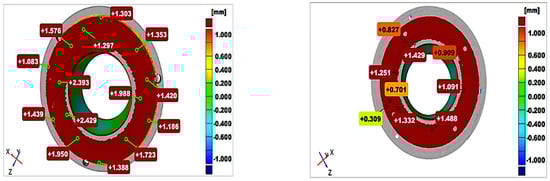 - In terms of stresses and deformations, the situation resulted from parameters, and the maximum underpass temperature of the deposited layer, i.e., 300 °C, proved to be correct because following the controls carried out, the deformation of the substrate material was less than 0.5 mm—measured at the inner diameter of the tubular substrate blank.