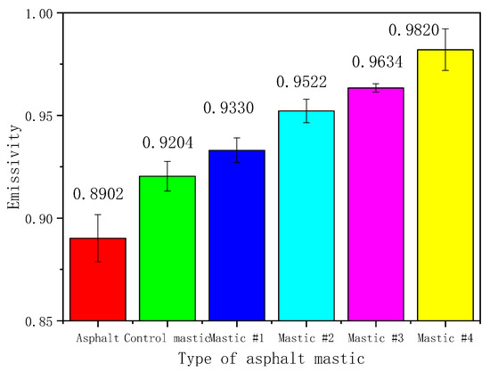 Emissivity results for different asphalt mastics.